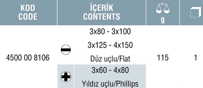 4500 ELEKTRONİKÇİ TİP (KLEMENS) TORNAVİDA SETİ ( 6 parça)-İZELTAŞ