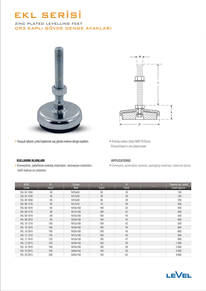 EKL CR3 KAPLI GÖVDE GENGE AYAKLAR ( GALVANİZLİ) - LEVEL |