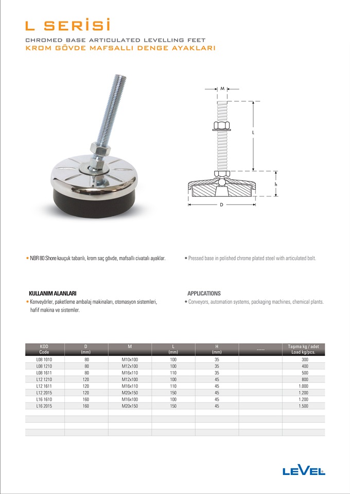 L SERİSİ KROM GÖVDE MAFSALLI DENGE AYAKLARI - LEVEL |