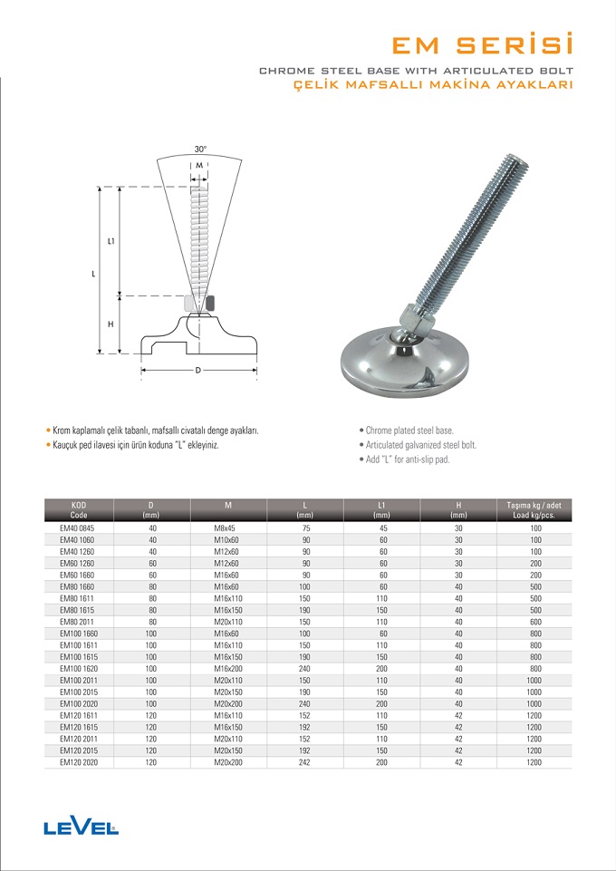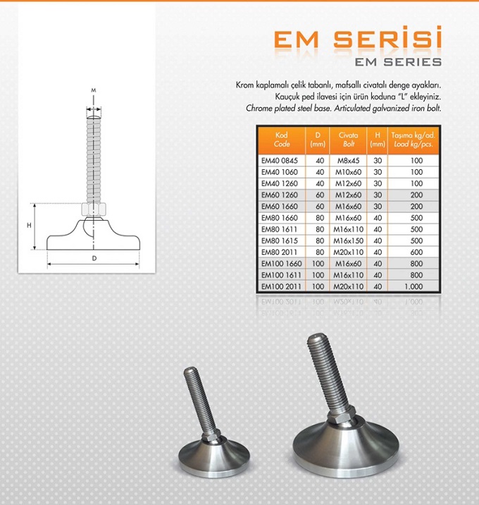 EM SERİSİ ÇELİK MAFSALLI MAKİNA AYAKLARI - LEVEL |