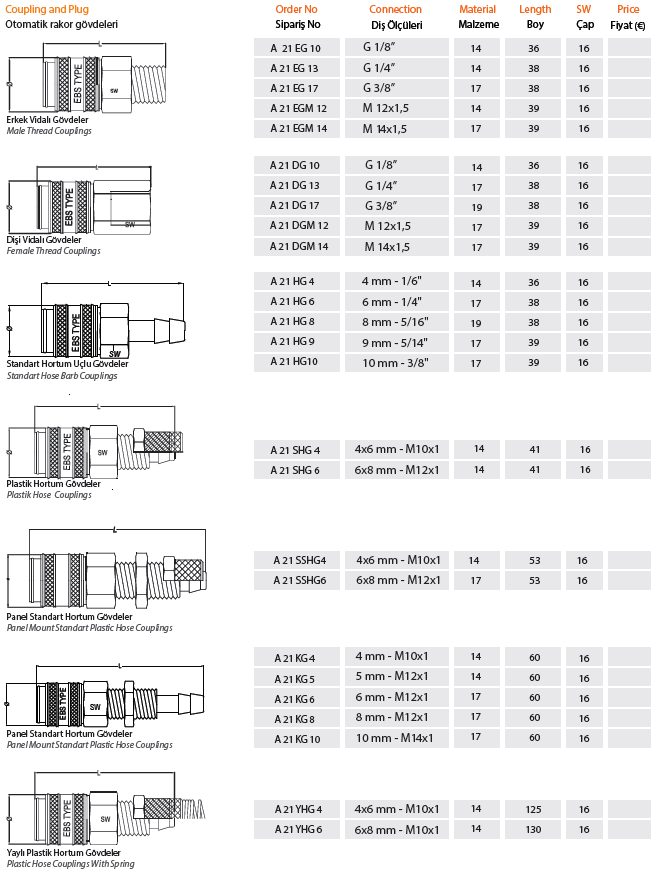 PNÖMATİK OTOMATİK RAKOR A21 |
