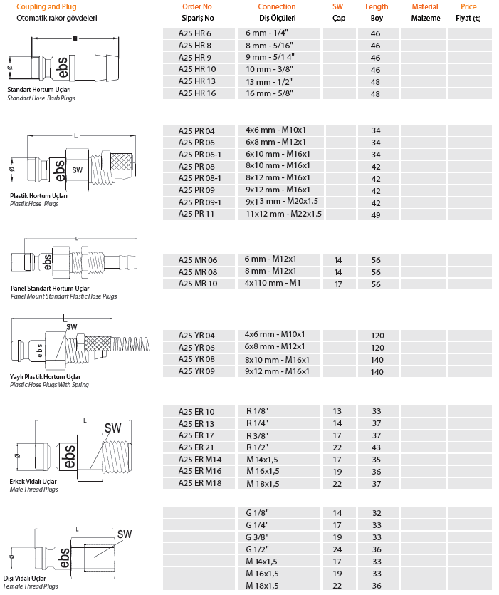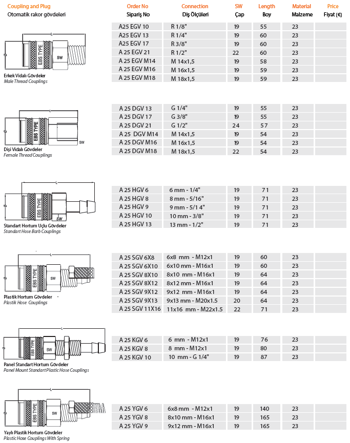 PNÖMATİK OTOMATİK RAKOR A25 |