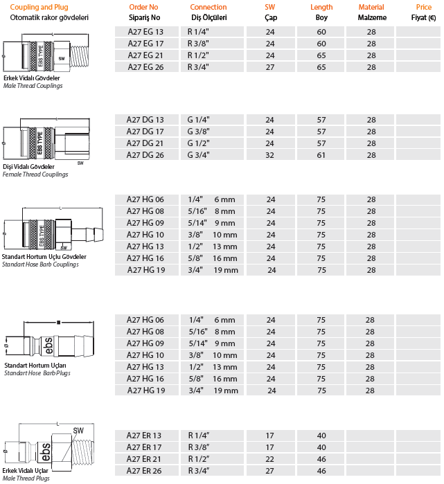 PNÖMATİK OTOMATİK RAKOR A27 |
