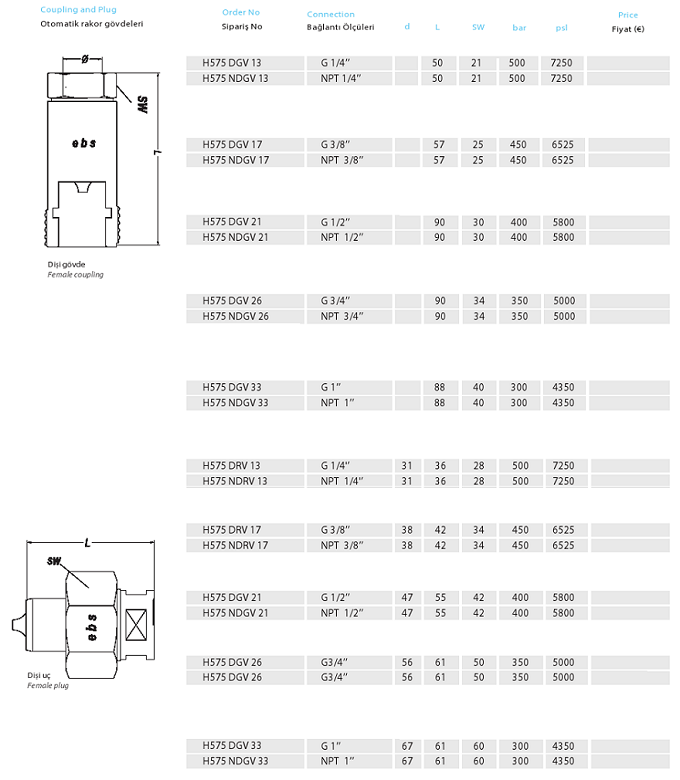 575 HİDROLİK SERİSİ OTOMATİK RAKOR |