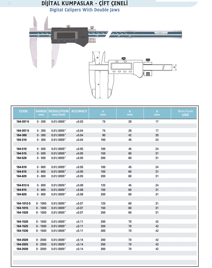 Dijital Kumpas KANON Çift Çeneli 164-xxx |