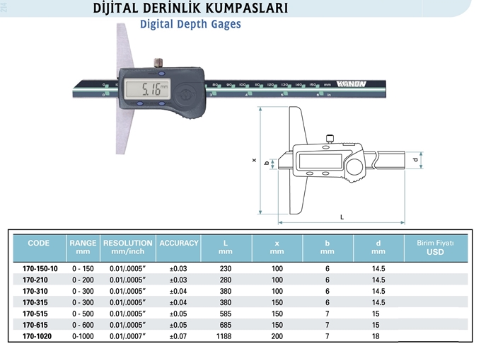 Dijital Derinlik Kumpası KANON 170-xxx |