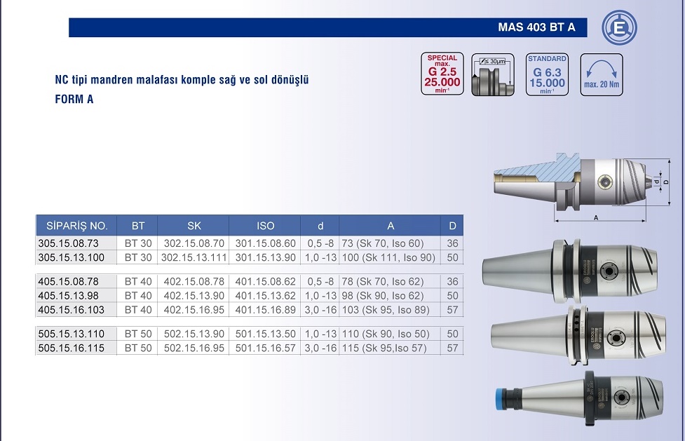 FORM A NC TİPİ MANDREN MALAFASI KOMPLE SAĞ ve SOL DÖNÜŞLÜ |