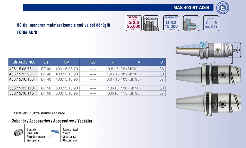 FORM AD/B NC TİPİ MANDREN MALAFASI KOMPLE SAĞ ve SOL DÖNÜŞLÜ |