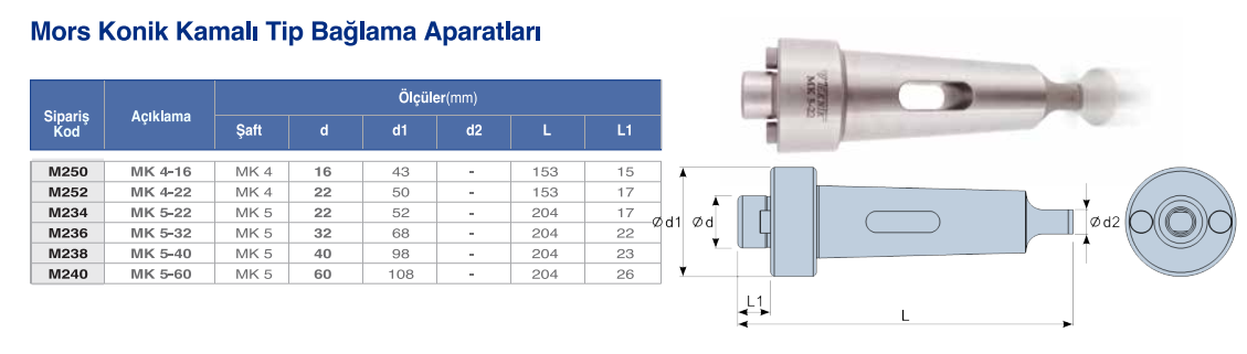 MORS KONİK KAMALI TİP BAĞLAMA APARATLARI |