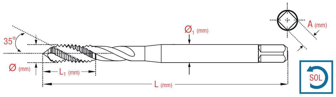 Sol 35° Helis Kanal Makine Kılavuzu - DIN371 - Metrik - HSS M2AL - Form C