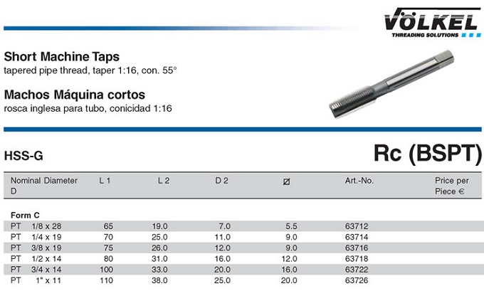 GAZ (NPT) 1:16 KONİK DİŞ SON KILAVUZ VÖLKEL |