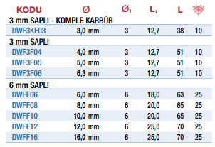 F Tipi - Kavisli Silindir - Karbür Freze - D&W |