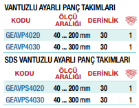 Vantuzlu Ayarlı Panç Takımları - Gerlinger |