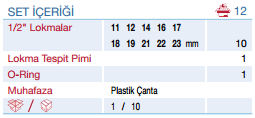 12 Parça 1/2" Altı Köşe CR-MO Lokma Seti - YAMA