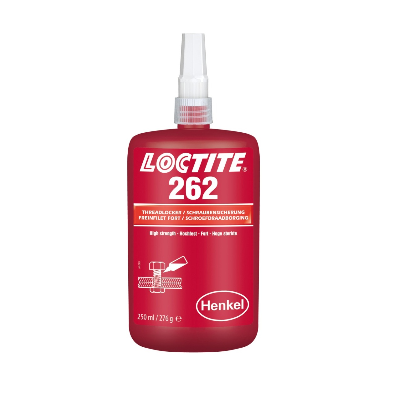 LOCTITE® 262, kırmızı renkli, genel amaçlı, orta ila yüksek mukavemetli, tiksotropik metakrilat bazlı bir yapıştırıcıdır. Çelik yapıştırma süresi 15 dakika, pirinç 8 dakika ve paslanmaz çelik 180 dakikadır. İzlemeye olanak vermesi amacıyla UV ışığı altında floresan ışığı yayar. Yapıştırıcı sızıntısının engellenmesi gereken uygulamaları için idealdir. Endüstriyel yağlardan kaynaklanan az miktardaki yüzey kirliliğine dayanıklıdır. Tüm metal bağlantı elemanları için uygundur.