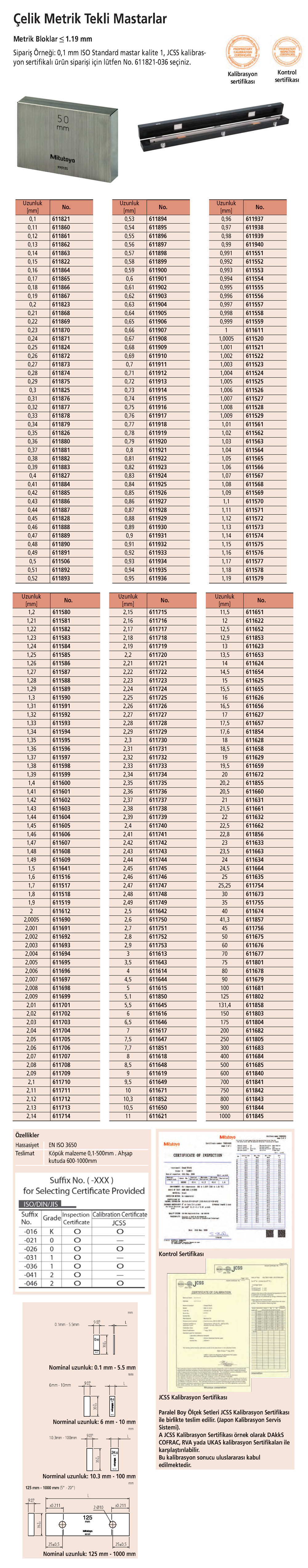 Çelik Metrik Tekli Mastarlar - Mitutoyo |