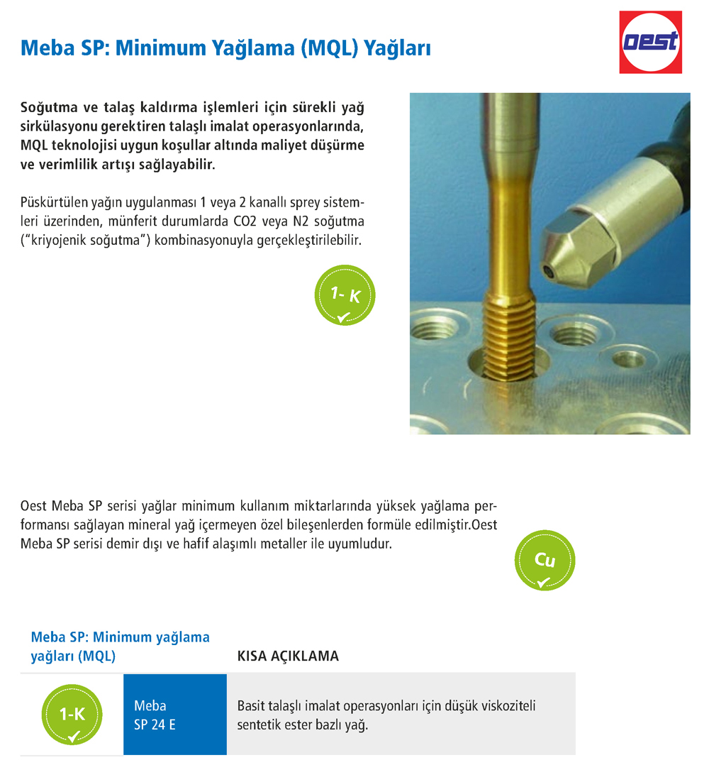 Meba SP Minimum Yağlama (MQL) Yağları - OEST |