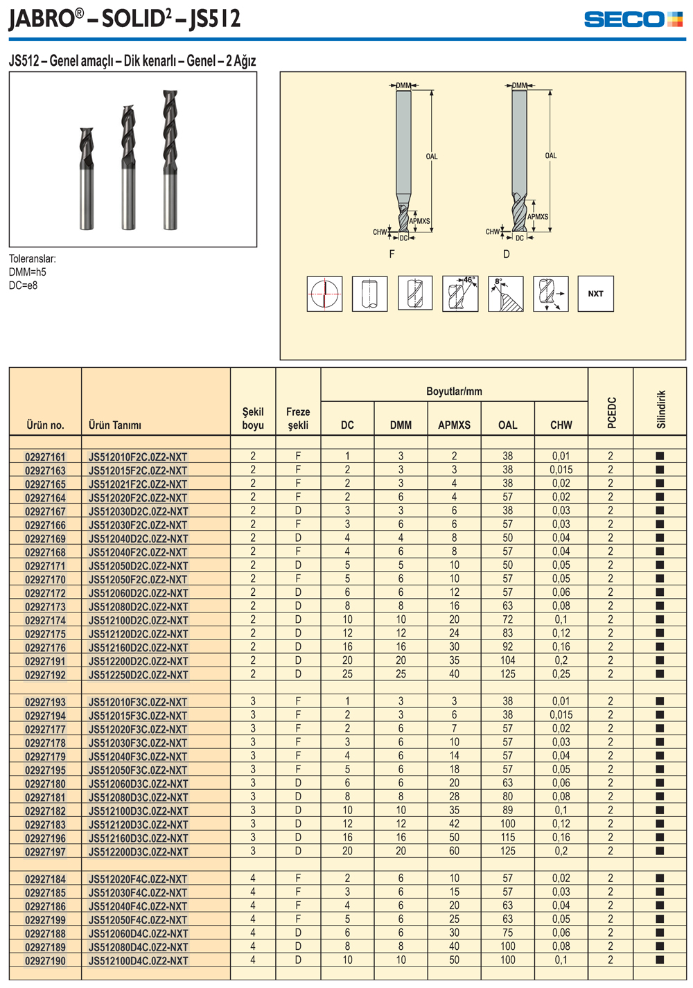 JS512 Genel Amaçlı Dik Kenarlı 2 Ağız Jabro Solid² - SECO |
