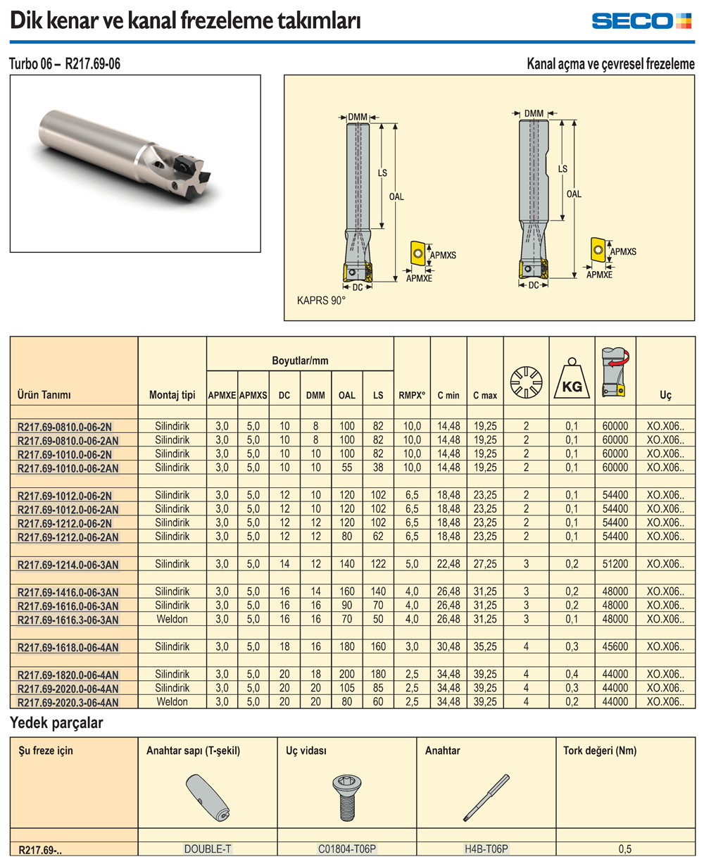 Turbo 06 R217.69 Kanal Açma ve Çevresel Frezeleme - SECO |