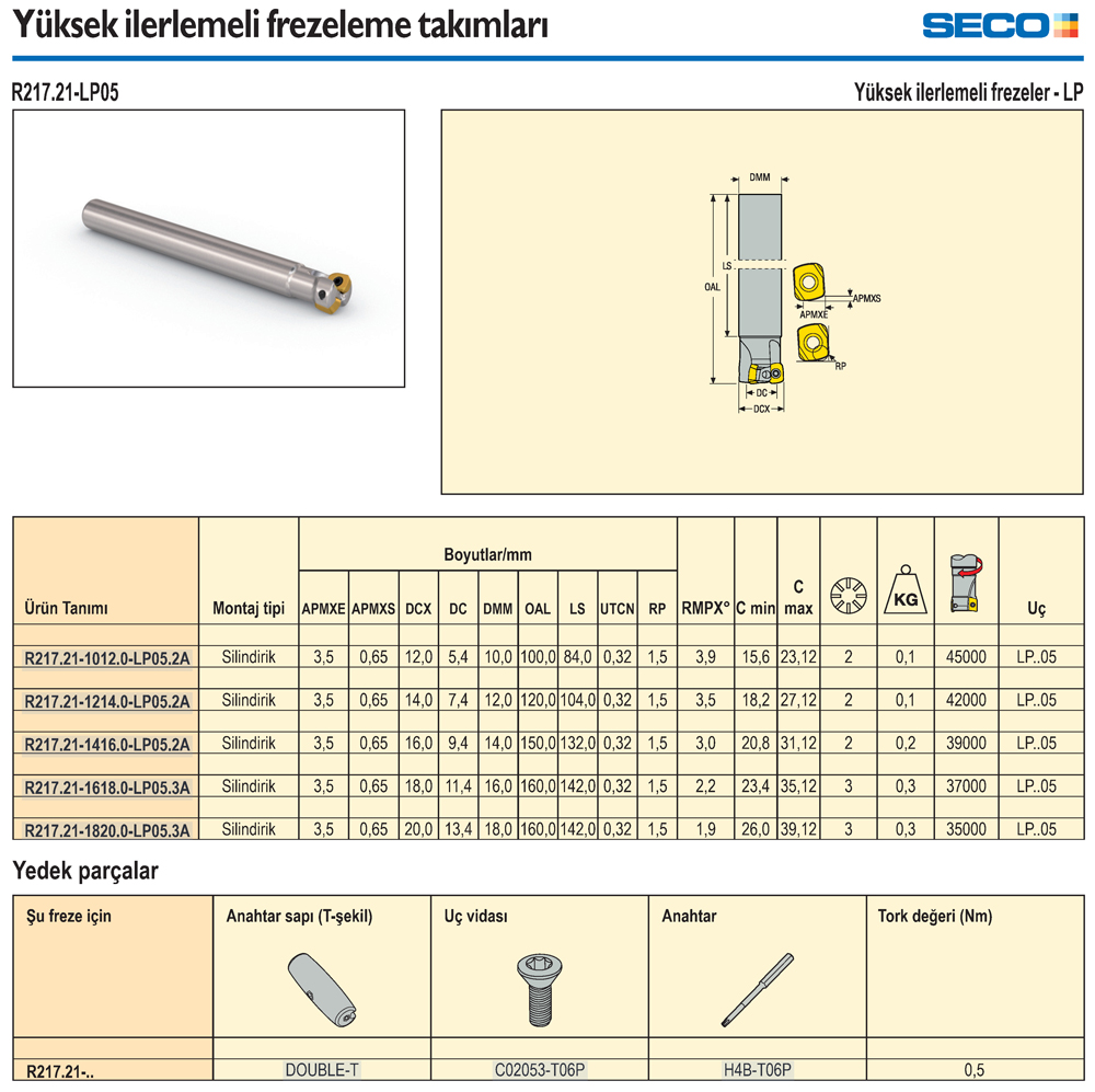 R217.21-LP05 Silindirik Yüksek İlerlemeli Frezeleme - SECO |