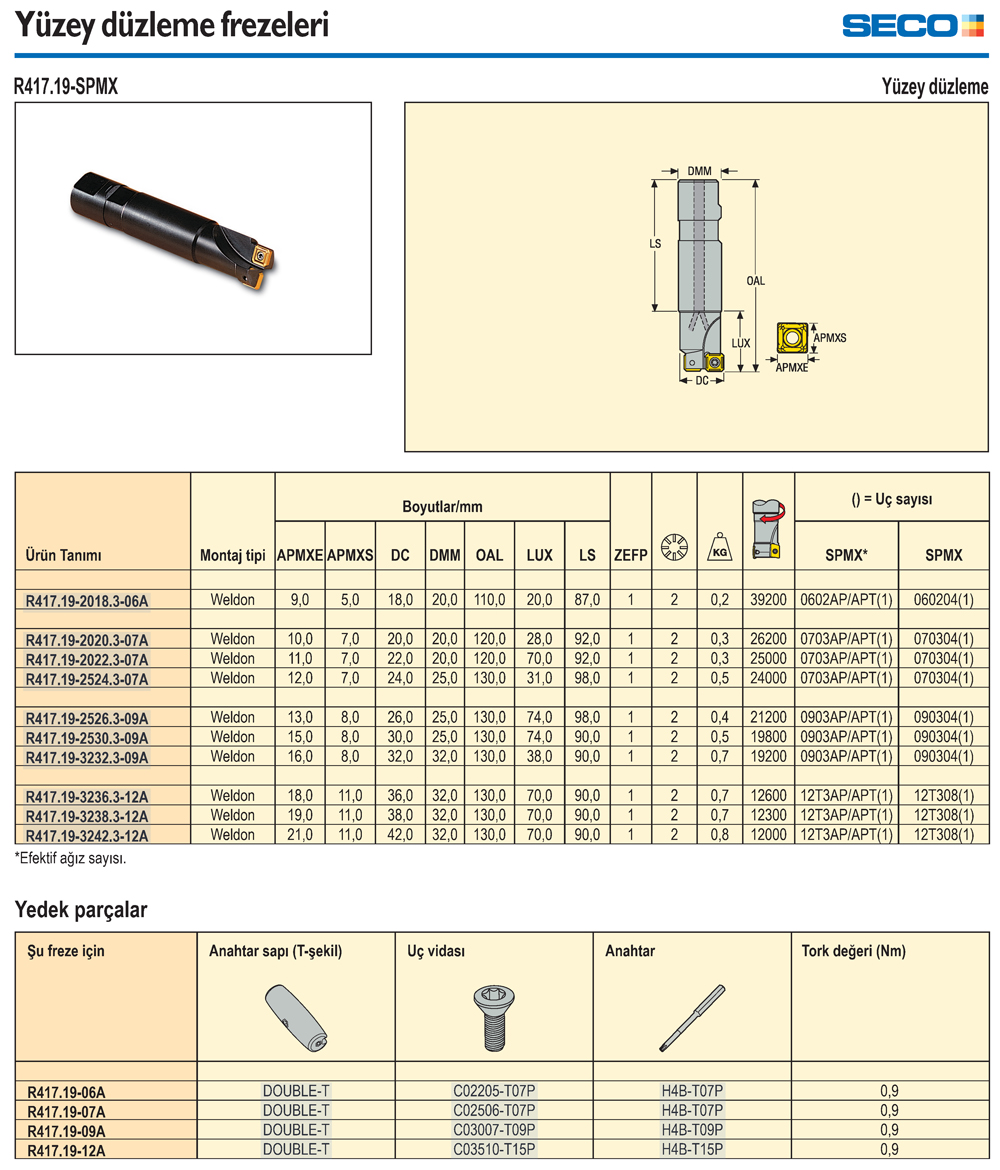 R417.19-SPMX Yüzey Düzleme Frezeleri - SECO |