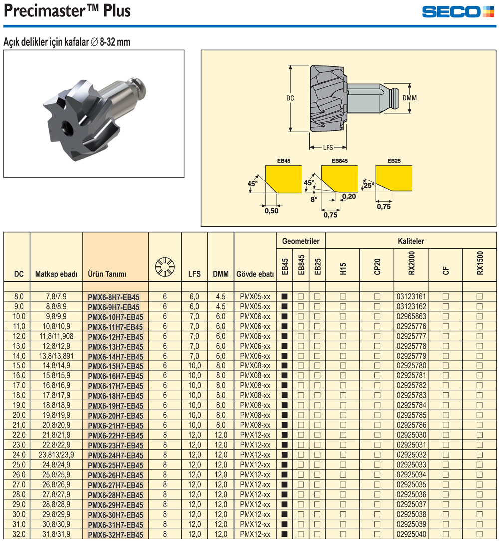 Ø8-32mm Açık Delikler için Kafalar Precimaster Plus - SECO |
