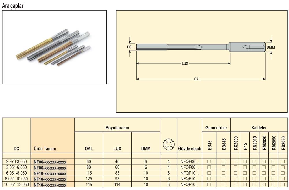 Kapalı ve Açık Delikler için Raybalar Ø2,97-6,00 mm Nanofix - SECO |