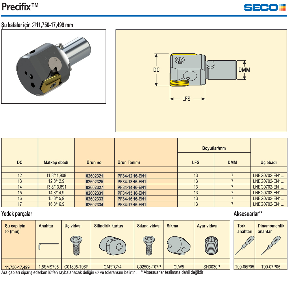 Ø11,750-17,499 mm Kafalar için Raybalama Precifix - SECO |