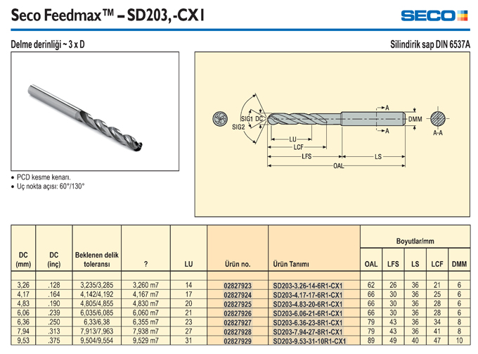 SD203 -CX1 DIN 6537A Seco Feedmax - SECO |