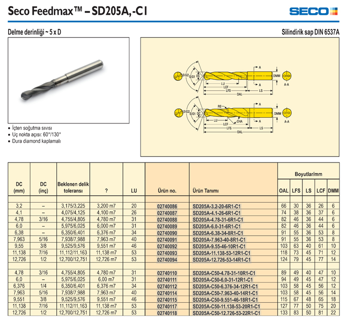 SD205A -C1 DIN 6537A Seco Feedmax - SECO |