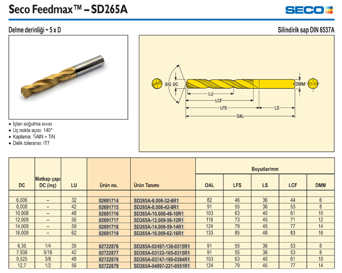 SD265A DIN 6537A Seco Feedmax - SECO |