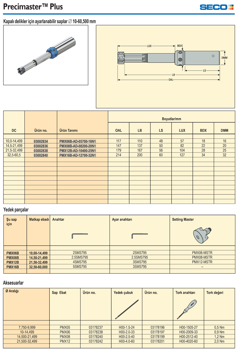 Kapalı Delikler için Ayarlanabilir Saplar Ø10-60,500 mm Precimaster Plus - SECO |