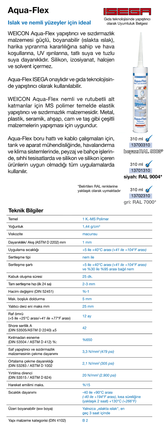 Aqua-Flex Gri Yapıştırıcı ve Sızdırmazlık - Weicon |