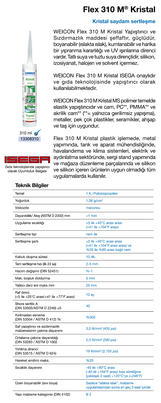Flex 310 M Kristal Saydam Polimer Yapıştırıcı - Weicon |