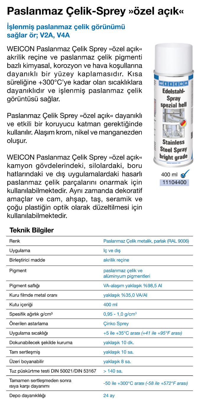 Paslanmaz Çelik Sprey Açık - Weicon |