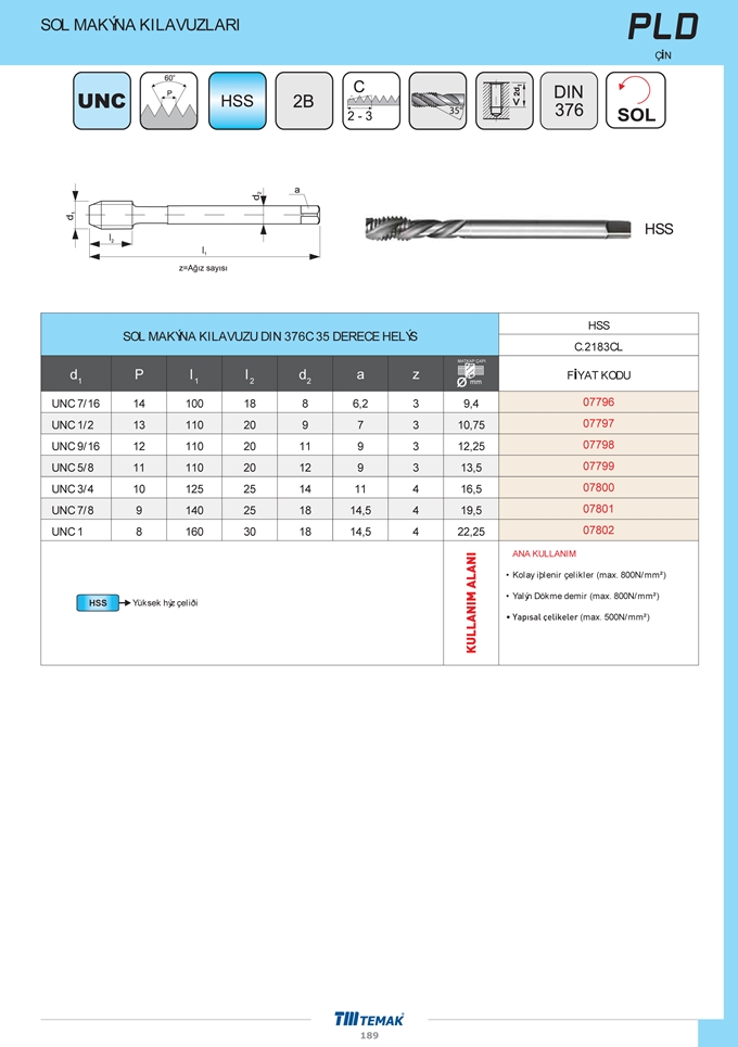 SOL MAKiNA KILAVUZU DIN 376C 35 DERECE HELiS HSS - PLD |