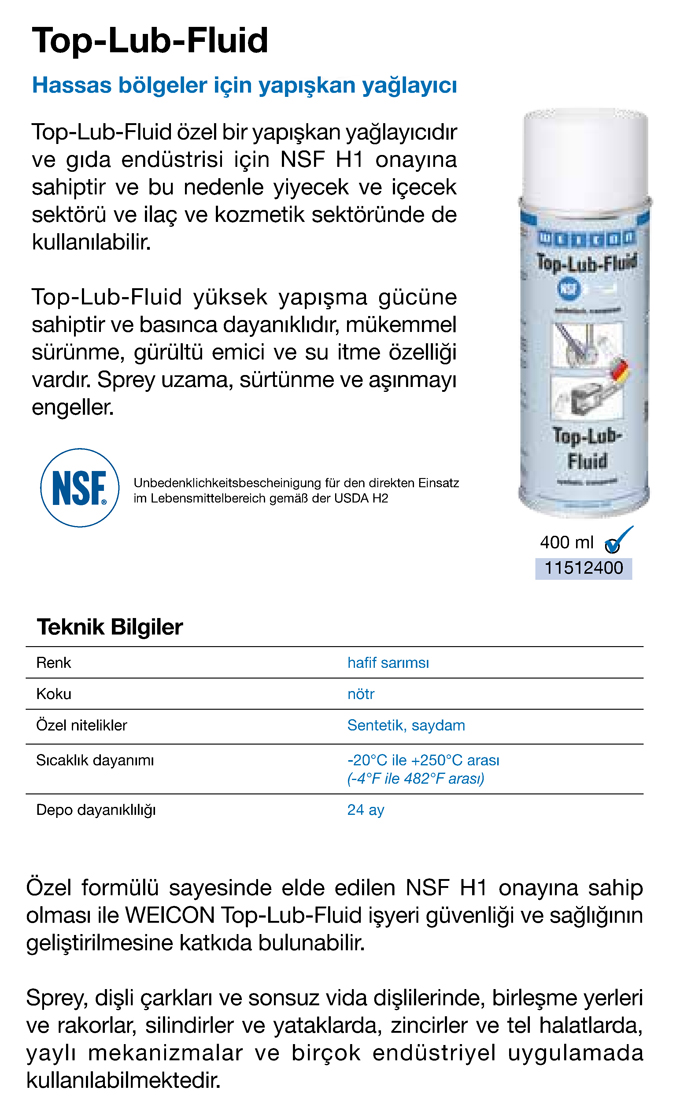 Top-Lub Fluid Yapışkan Yağlayıcı Sprey - Weicon |