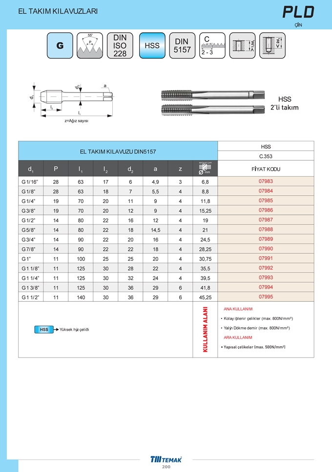 GAZ DİŞ 2'Lİ EL TAKIM KILAVUZU HSS DIN5157- TM |