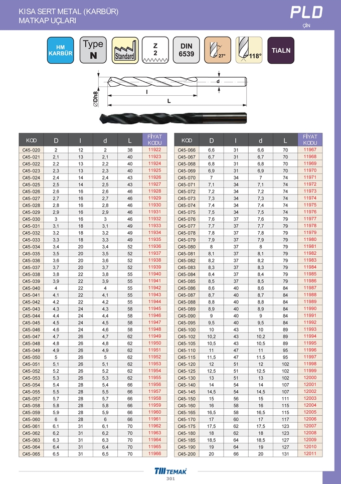 KISA SERT METAL (KARBÜR) MATKAP UÇLARI - PLD |