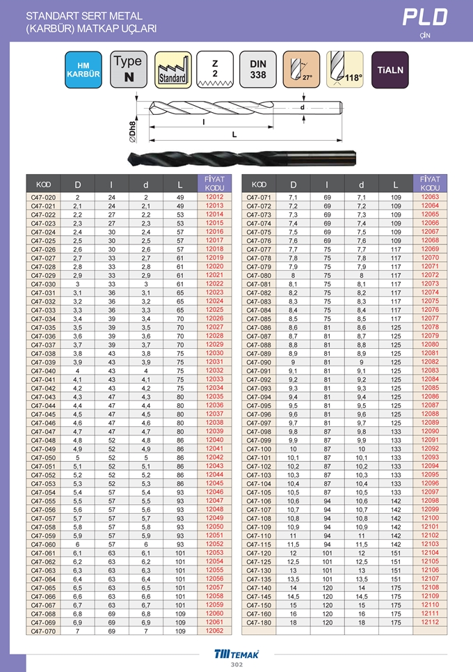 STANDART SERT METAL (KARBÜR) MATKAP UÇLARI |
