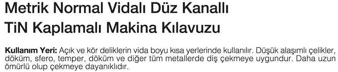 METRİK NORMAL VİDALI DÜZ KANALLI TİN KAPLAMALI MAKİNE KILAVUZU-MTE |