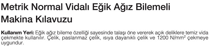 METRİK NORMAL VİDALI EĞİK AĞIZ BİLEMELİ MAKİNE KILAVUZU-MTE |