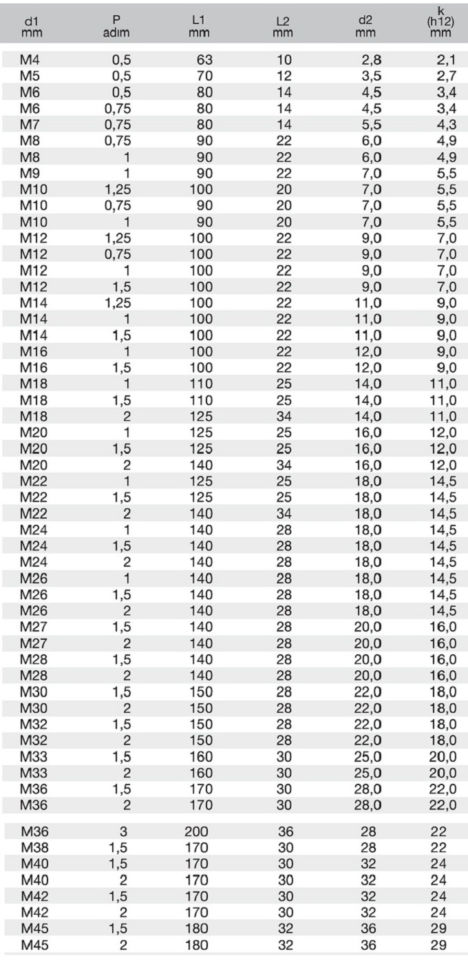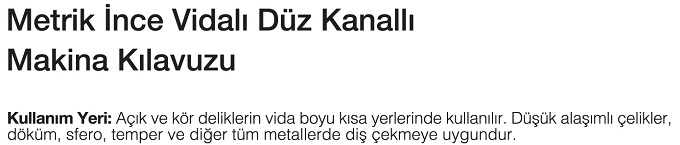 METRİK İNCE VİDALI DÜZ KANALLI MAKİNE KILAVUZU-MTE |