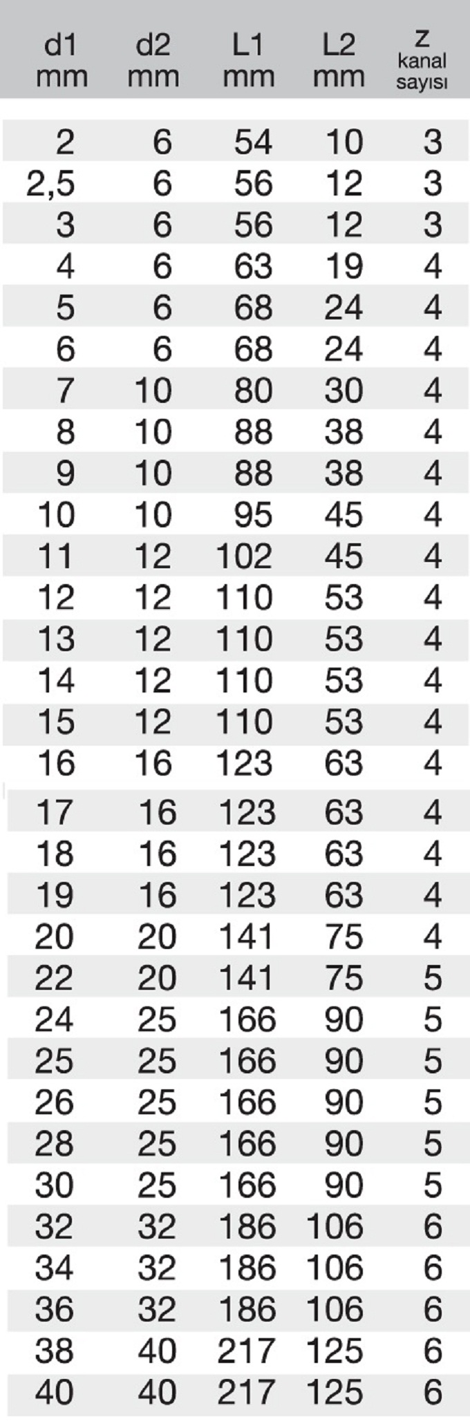 SİLİNDİRİK SAPLI PARMAK FREZE UZUN-BN-MTE |